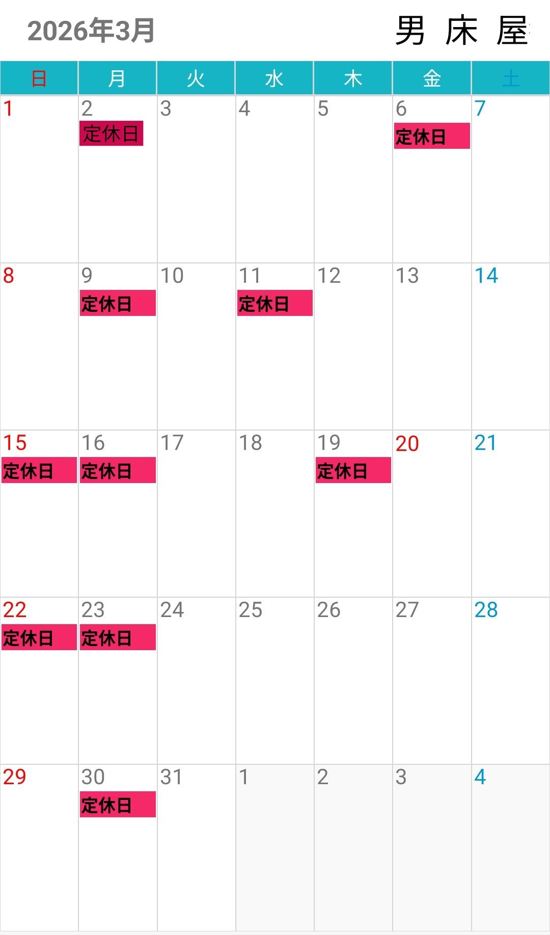 - 3月定休日